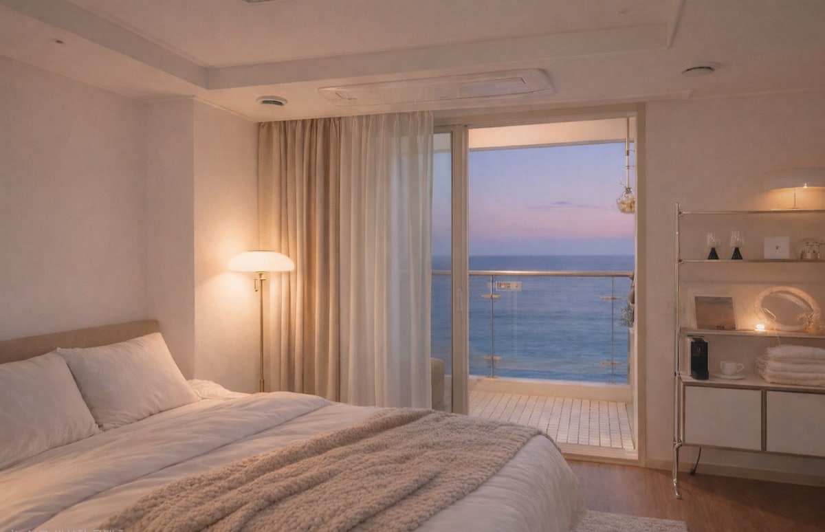 속초에 왔다면 바다를 보러 오셨을 텐데, 저희는 등대해변과 동해 일출이 한눈에 들어오는 객실입니다. 고층에서 내려다보는 시원한 오션뷰와 밤에는 속초 시내 불빛까지 이어지는 파노라마 전망으로 하루를 온전히 쉬는 데만 집중하실 수 있어요. 무엇보다도 많은 게스트분들이 남겨주신 공통된 이야기는 하나입니다. “사진보다 실제가 더 깨끗하다”, “속초에서 가장 관리가 잘 된 숙소였다”. 호텔리어 기준으로도 인정받은 청결 관리 시스템과 매 숙박 후 꼼꼼한 세팅으로 처음 들어오는 순간부터 기분이 달라지는 공간을 유지하고 있습니다. 바다 앞 숙소는 많지만, 뷰·청결·위치가 동시에 만족스러운 곳은 흔하지 않습니다. 속초에서 조용히 잘 쉬고 싶으시다면, 이유 있는 선택이 될 거예요!