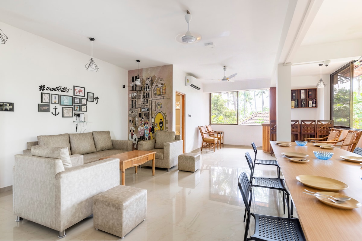 The BluJam Villa, Arpora is a beautiful lakefront 3BHK villa in North Goa with an infinity-edge private pool, offering stunning views of the lake, forest, & sunsets Prime Location: Just 5 mins to Baga, 10 to Anjuna & Calangute Enjoy stylish interiors, a fully equipped kitchen, resident caretaker, 24/7 generator power backup, double parking space & serenity —all while staying close to Goa’s top beaches, cafes, nightlife, & attractions Perfect for families & friends - groups of 5, 6, 7, 8 & 9