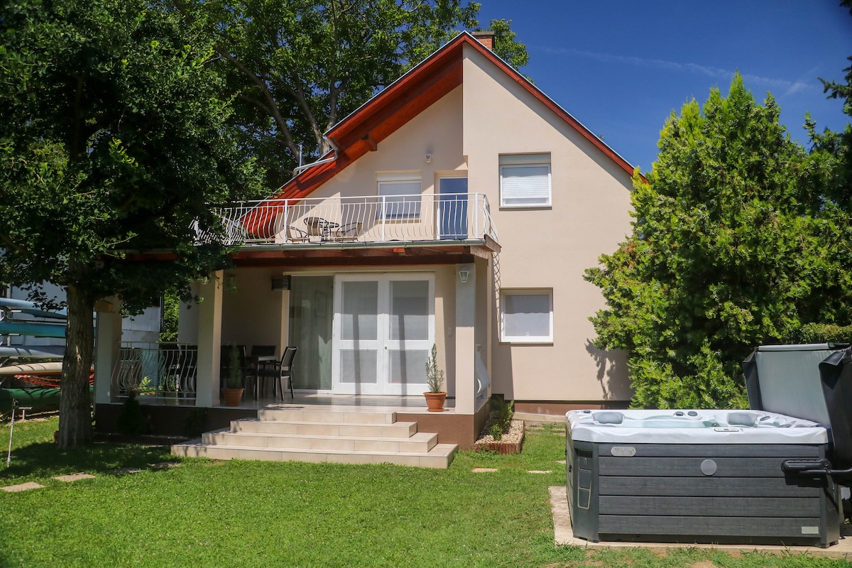 Cottage providing full comfort for 4 people including a huge terrace with a magnificent view over the Danube and Hungary's biggest church the Basilica. There are tools available for outdoor grilling and games as basketball, ping pong, and badminton. On the ground floor you can find the american kitchen, and living room with a sofa bed for two persons. Upstairs there is a bedroom with two beds, which can be extended with 2 guest beds if it's needed.