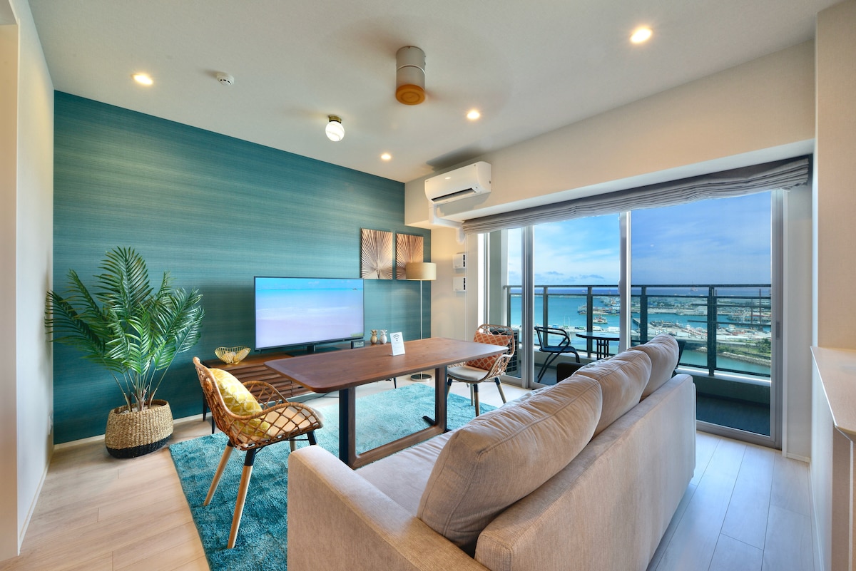 全海景房 那霸市區唯一的沙灘就在眼前 旁有24小時營業連鎖商超 徒步12分鐘抵達輕軌站和國際通大街