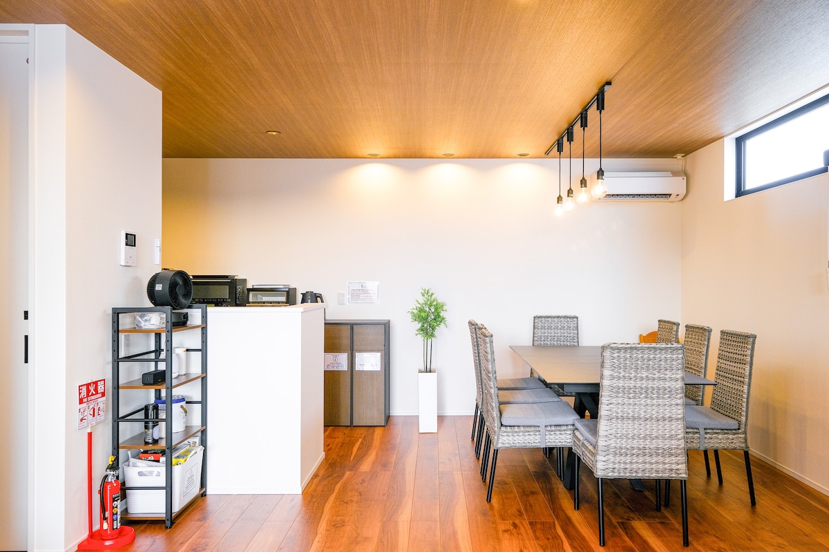 《宿》 ご家族、ご友人等様々な状況でもお楽しみいただけるようデザインしました。 当宿は、敷地内禁煙です。 アルコール、ソフトドリンク *ウェルカムドリンク付* 《アクティビティ》 5人乗りのゴムボートを無料で貸し出ししております。 《立地》 空港から車で20分で到着でき、沖縄の素敵な海辺を徒歩2分で満喫できます。 高速道路にアクセスしやすく、遠出にも便利 《BBQ》 BBQセットがあり、楽しいひと時をお楽しみください。※食材はコースをいくつかご用意しておりますので、写真にあるメニューからお選びいただくかご入室後にご注文いただくかご自身でのご準備をお願いします。また、小さなお子様は保護者の同伴をお願いいたします。ご利用可能時間は午後8時までとなっております。 食材コースの注文は、テーブルにあるメニュー表からご注文よろしくお願いいたします。宿泊数1泊のお客様は大変申し訳ございませんが準備が間に合わないため、ご利用いただけませんのでご了承ください。 《プロジェクター》 120インチ4kというダイナミックな映像で優雅なシアターをお楽しみくださいませ。
