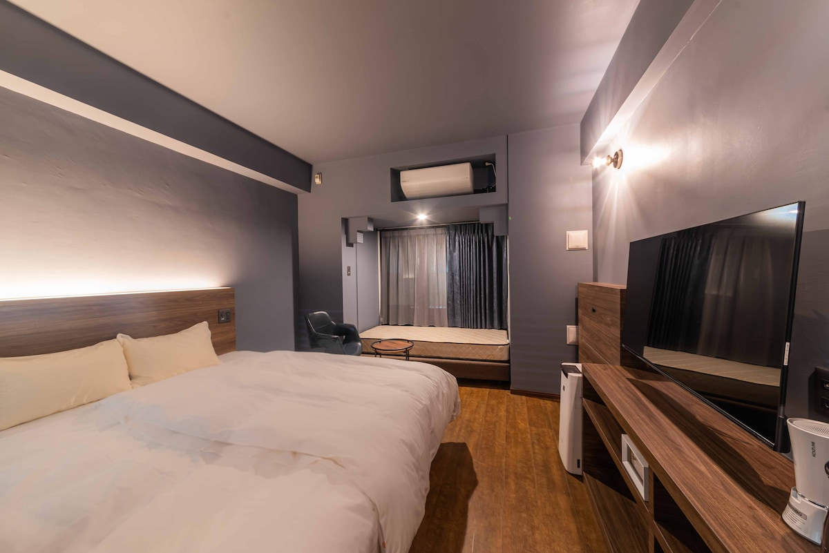 Time slip into a 70’s American motel! Built during the U.S. occupation of Okinawa, this former motel was renovated by an architectural design office and is now run by us as a boutique motel. Located in central Okinawa, where Japanese and American cultures blend, it’s the perfect base for the beach, city, and shopping. Ideal for travelers, long-stay guests, and locals seeking a cozy hideaway. *** This listing is for our Double Bedroom. For the Twin or Triple Bedrooms, please visit our Host Page.