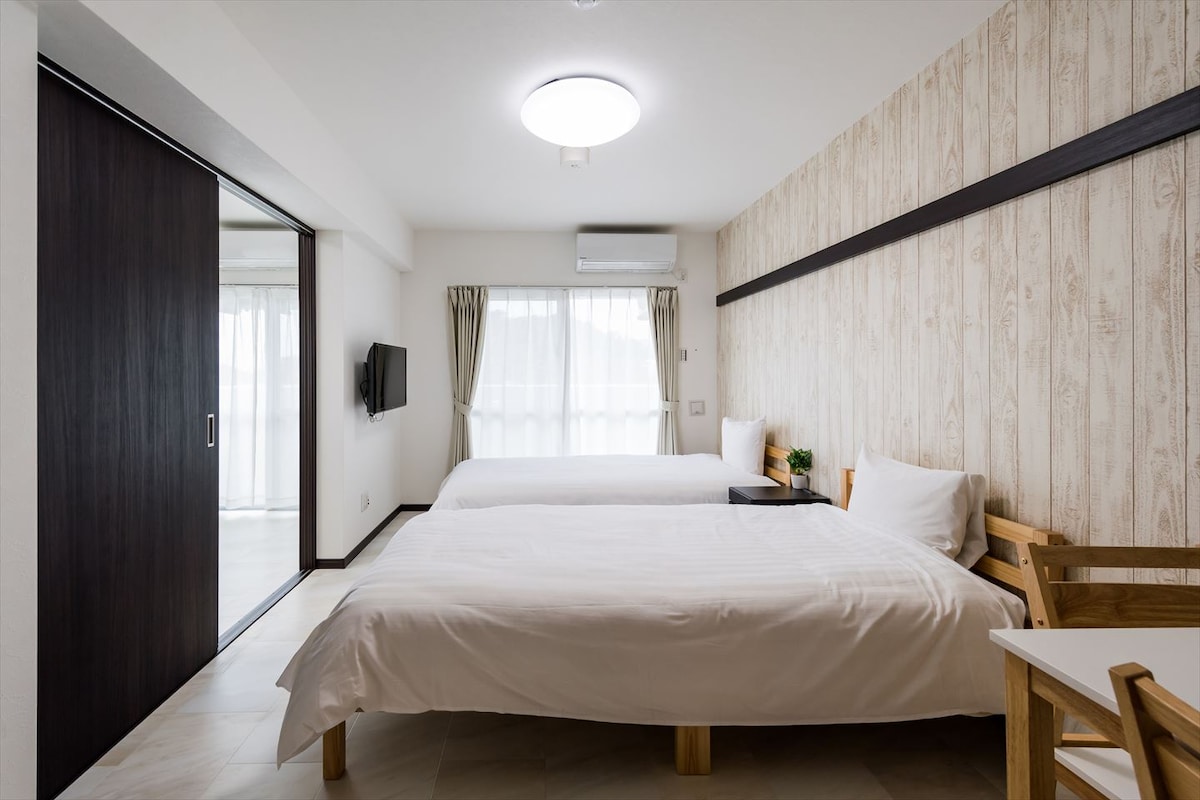 It is a Twin room. We have 2 single beds and 2 futons. We have installed kitchen, cooking utensils, washing machine, dryer etc that can be used as a long stay hotel. There is no intermediate cleaning during consecutive nights. Hotel Thomas Nago is a natural and rich city surrounded by the ocean and has many mountains. You can spend free space and time with good access to the city. All rooms are equipped with furniture and home appliances, so you can enjoy yourself as if you were at home.