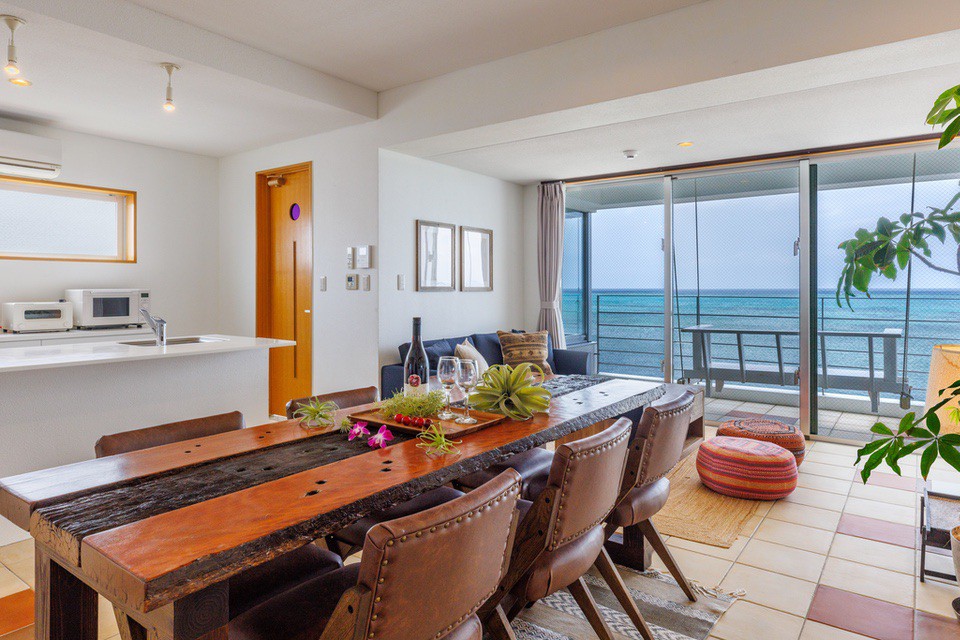 こちらの魅力的な宿泊先の素敵なインテリアを、きっと気にいっていただけるはずです。 沖縄本島中部に位置する東恩納エリア、太平洋の金武湾が一望、海目の前の高台で、新築されたモダンな邸宅です。周囲にはおしゃれな外人住宅街、沖縄なのに、まるでアメリカの小さいな住宅街です。歩いて3分真下は開発されていないビーチがあります。サーフィン、マーリンスポーツと釣りなどの名所です。 建築家と写真家が設計したスペシャルな新築邸宅 室内もテーマごとにコーディネーター、デザインされ、アーティスティックかつ快適なリゾート住空間を、海一望の高台という絶好のロケーション、贅沢な時間をお過ごしください!