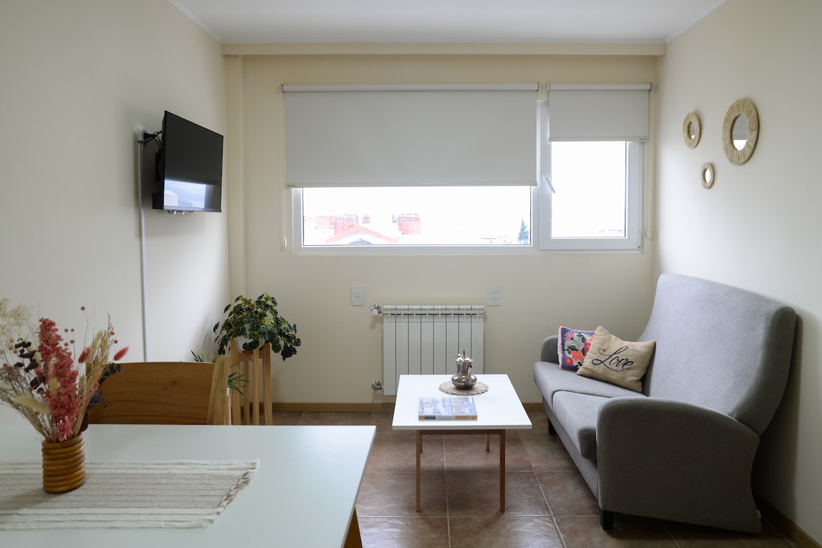 Enjoy Bariloche from a bright apartment with balcony and views of Lake Nahuel Huapi. Just 3 blocks from the Civic Center, on a quiet street, ideal for resting while staying close to everything. One bedroom, one bathroom, full kitchen and cozy living room. Sleeps 4 with a double bed and two single bunk beds. Perfect for couples, families or friends to explore the city and relax watching the sunset from the balcony.