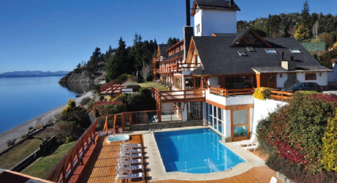 Tu Refugio Alpino frente al Nahuel Huapi. Con una ubicación inmejorable sobre la costa del lago, esta hostería ofrece habitaciones acogedoras con vistas espectaculares y máximo confort. Nuestras instalaciones están pensadas para el relax absoluto: disfrute de una amplia terraza de madera junto al agua, piscina exterior con jacuzzi y un relajante sauna seco. Además, deléitese con nuestra gastronomía en un comedor con ventanales panorámicos. El refugio perfecto para sus vacaciones en la Patagonia.