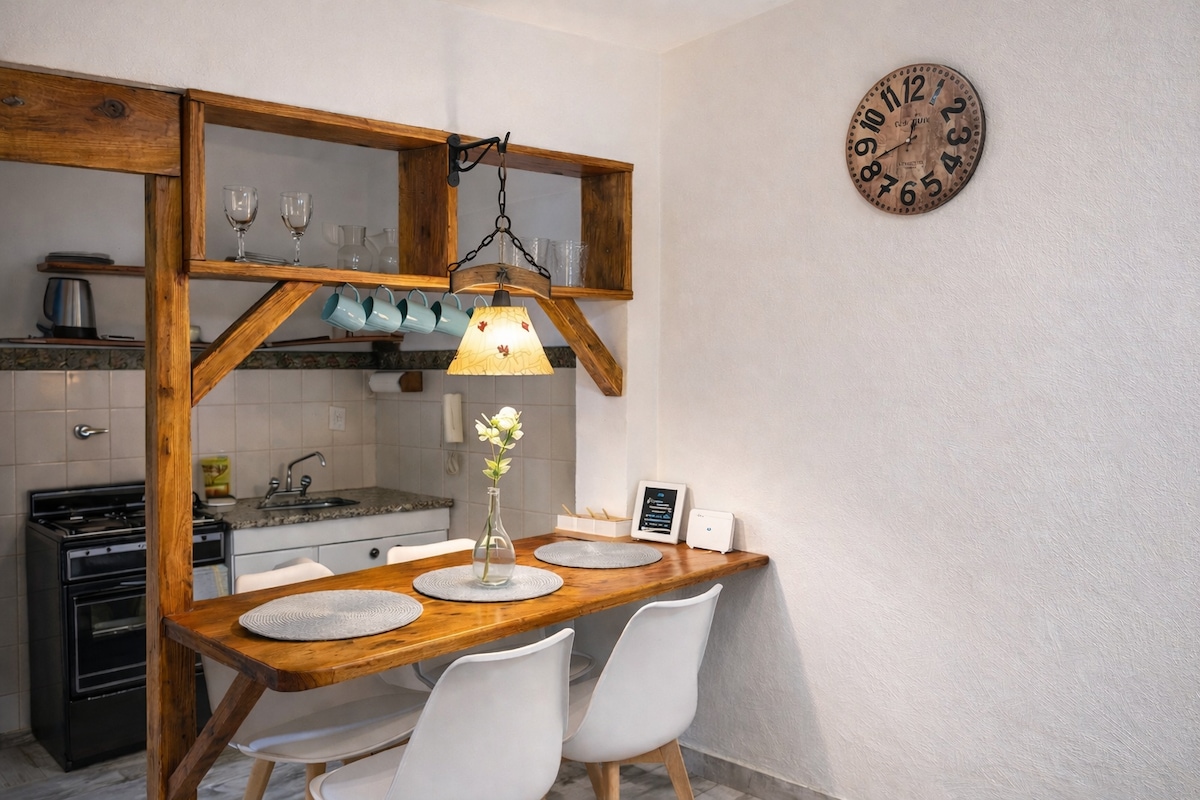Relájate en este alojamiento bonito, acogedor y tranquilo. Monoambiente nuevo 32 m2, equipado para 2 adultos. Decoración estilo vintage-nórdica. Cochera propia al aire libre dentro del predio cerrado incluida en la estadía. Baño con bañadera con ducha, bidet, inodoro, vanitory. Dormitorio con somier de 2 plazas. Cocina comedor completamente equipada. Mesa, sillas y futón de madera. Textiles Televisor 24" Chromecast. Internet. Frente vidriado con 1 puerta y 1 ventana. Vista al lago y montañas