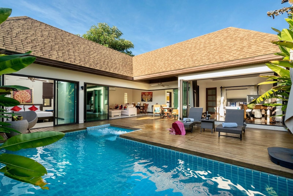 Riviera Villa is a luxury five-bedroom villa in the exclusive Nai Harn Baan-Bua estate, only a few minutes’ drive from stunning Nai Harn beach. The villa has a private pool, jacuzzi, five en suite bathrooms, spacious common spaces, a fully equipped kitchen, pool table and super high-speed wifi with Netflix. It’s a fantastic spot for family vacations spot or a getaway with friends, with breathtaking unobstructed views that stretch from the private estate to the surrounding lake and hills.