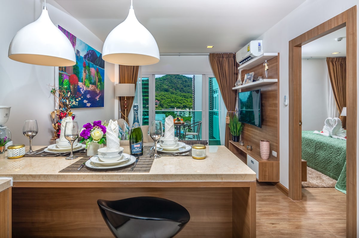 Новая двухуровневая квартира (60 кв м) на 7 этаже в шикарном пятизвездочном отеле. Гости могут пользоваться всей инфраструктурой отеля: - Бесплатные бассейны (один с детскими горками, бассейн по всему периметру отеля) - Бассейн с баром на крыше (плата 200 бат с человека. сумму можно использовать в качестве кредита на оплату в кафе) - Рестораны (в том числе Starbucks) - Спортзал Рядом набережная пляжа Раваи, где много кафе и ресторанов , отсюда можно отправиться на лодке к соседним островам.