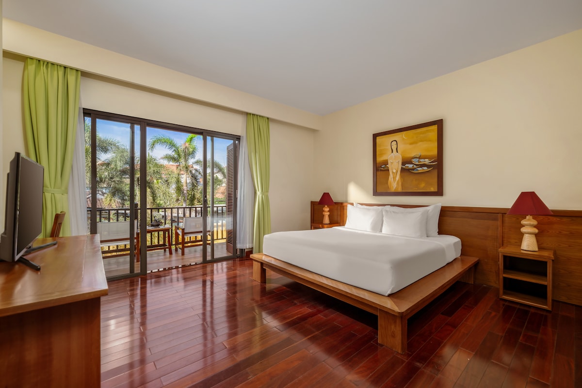 Our Suite room is the most stunning room at Villa De Campagne Hoi An. It is 60m2 large, with 01 private shower and 01 outdoor bathtub. Sleeping bed is exceptionally soft and cozy decoration style, sofa bed and TV channels. The room has 01 private garden, which is very green and relaxing