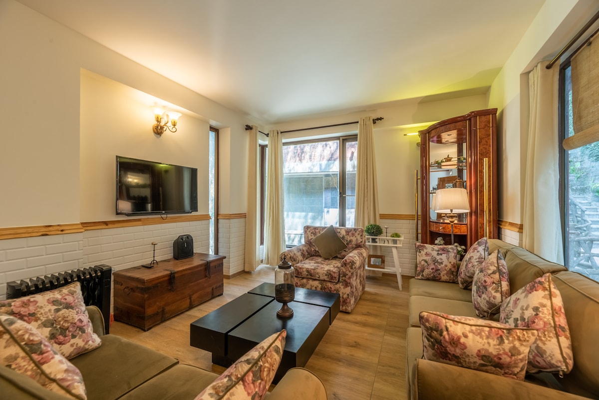 Wake up to serene valley views at this peaceful 1-room retreat in Mukteshwar, near Hanuman Mandir. A cosy bedroom opens onto a private balcony where you can sip morning tea or watch sunset skies.Explore beautifully landscaped common spaces, from a spacious terrace to a stepped garden surrounded by nature. Nearby, visit scenic Sunset Point or wander through the charming IVRI campus. Perfect for travellers seeking calm, comfort, and unforgettable mountain views