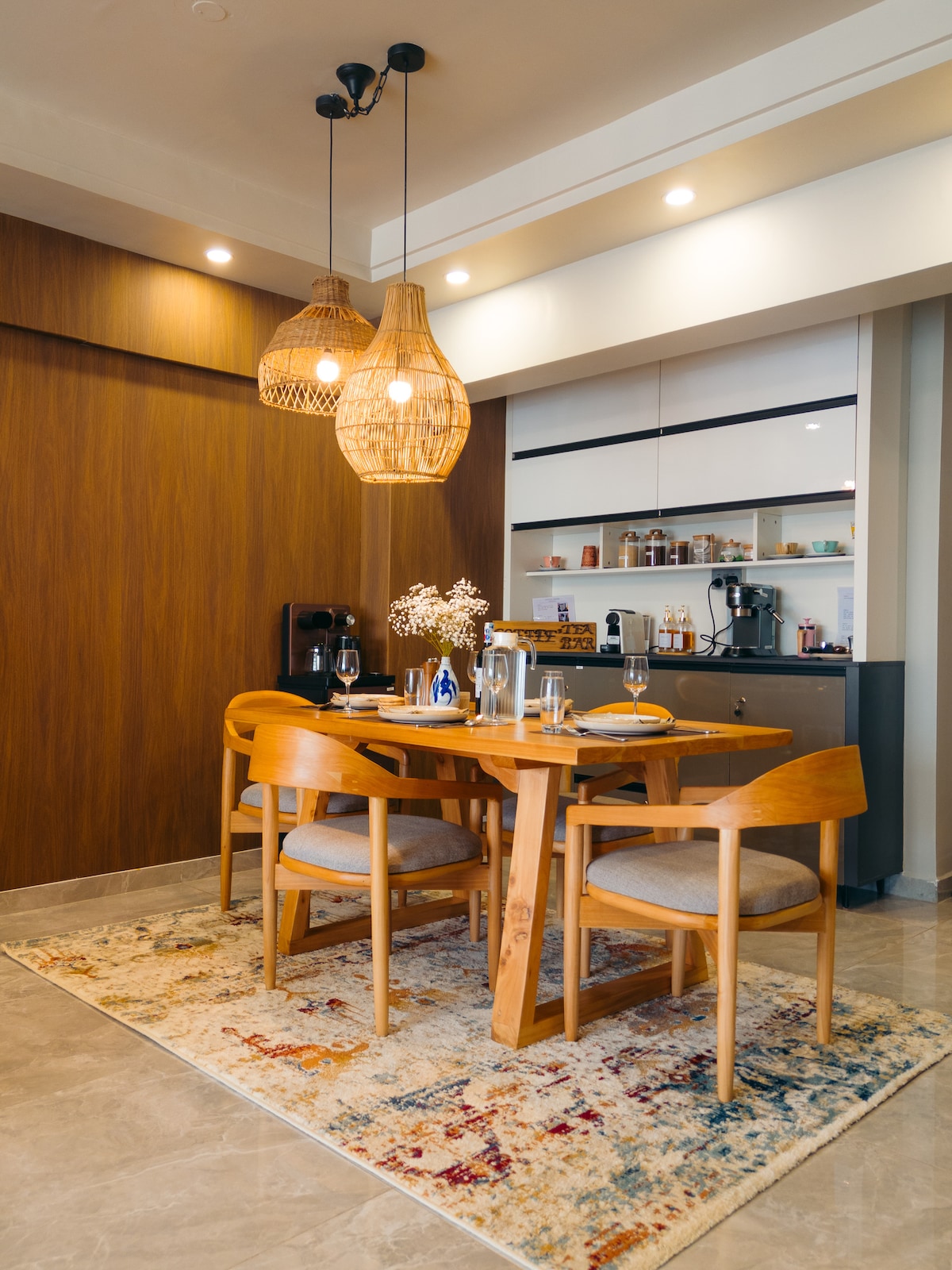 Japandi Sanctuary,配备咖啡吧和黑胶唱片播放器