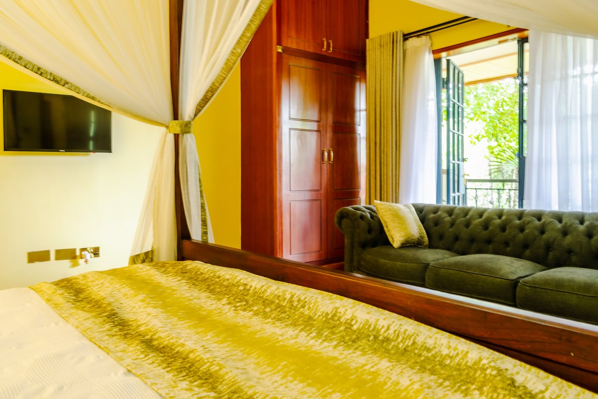 The building is situated along Church road, Westlands. Our apartment features a spacious bedroom with a luxurious king-size bed, promising you restful nights after days full of adventure or work. The bed is adorned with premium linens, plush pillows, and a cozy duvet, ensuring the utmost comfort. The floor to ceiling windows not only flood the room with natural light but also offer stunning views of Nairobi's dynamic skyline, making your mornings brighter and your evenings more enchanting.