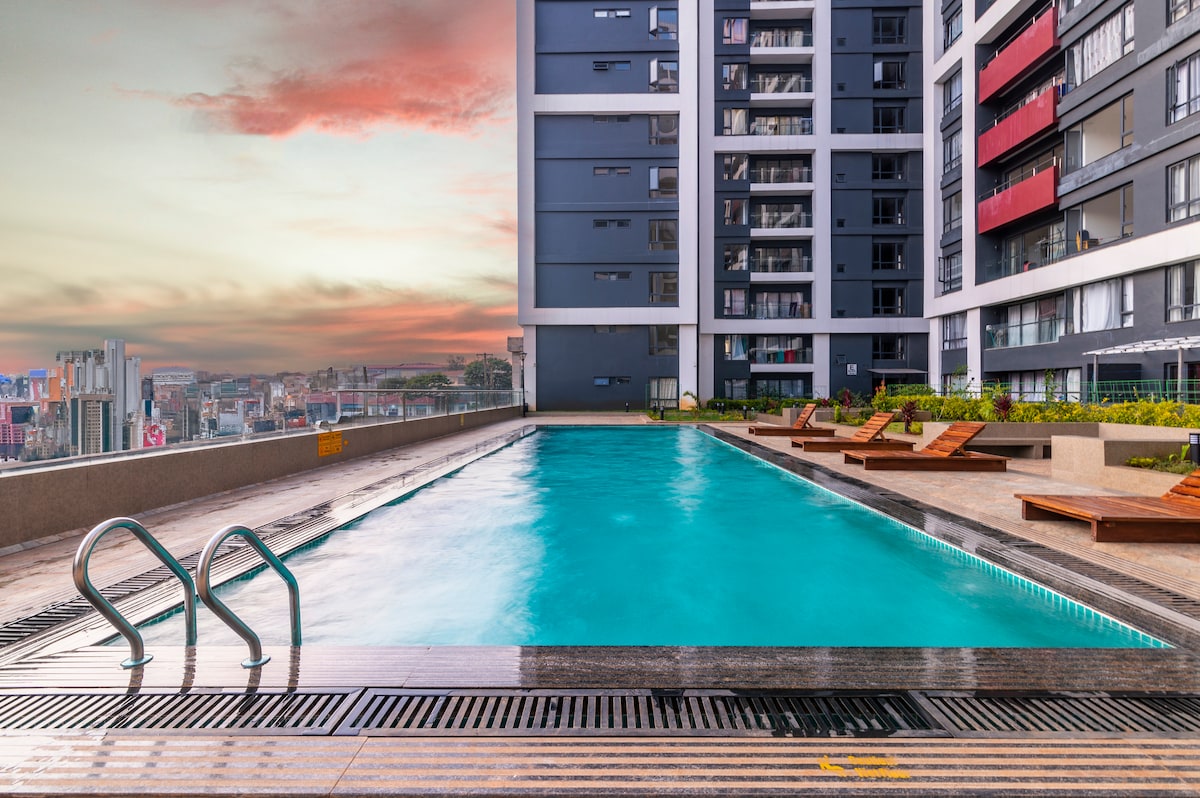 豪华2卧室中央绿洲,带泳池、健身房和景观