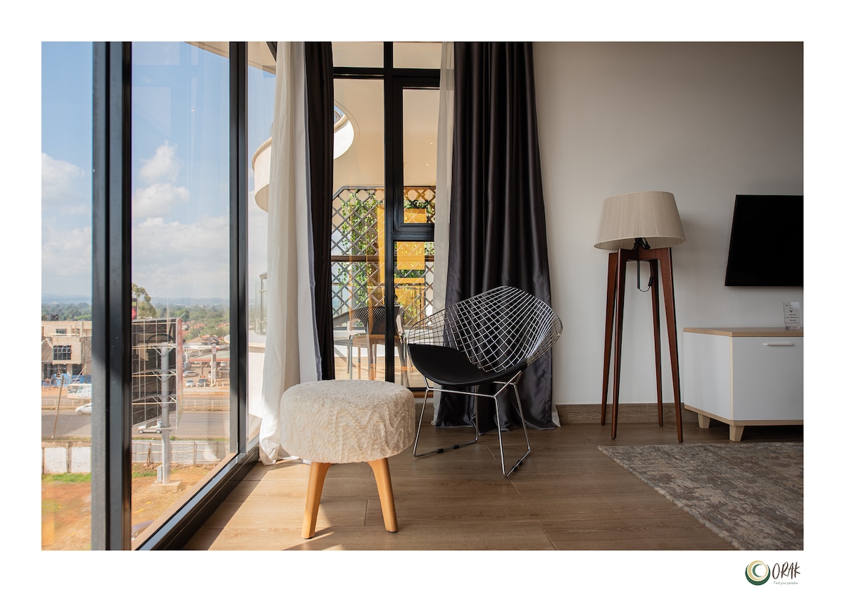 Enjoy hotel-style living in this corner apartment with direct access from the JKIA Expressway; steps from the Lavington business hub, shopping malls, and an in-house coffee shop. Floor-to-ceiling windows frame stunning Ngong Hills views, while the open-plan living and bedrooms create a bright, airy environment. A secure smart lock for a seamless check-in. Perfect for both business & leisure stays. Designed for ease, comfort, and quiet sophistication - enjoy the experience of Orak Hospitality.