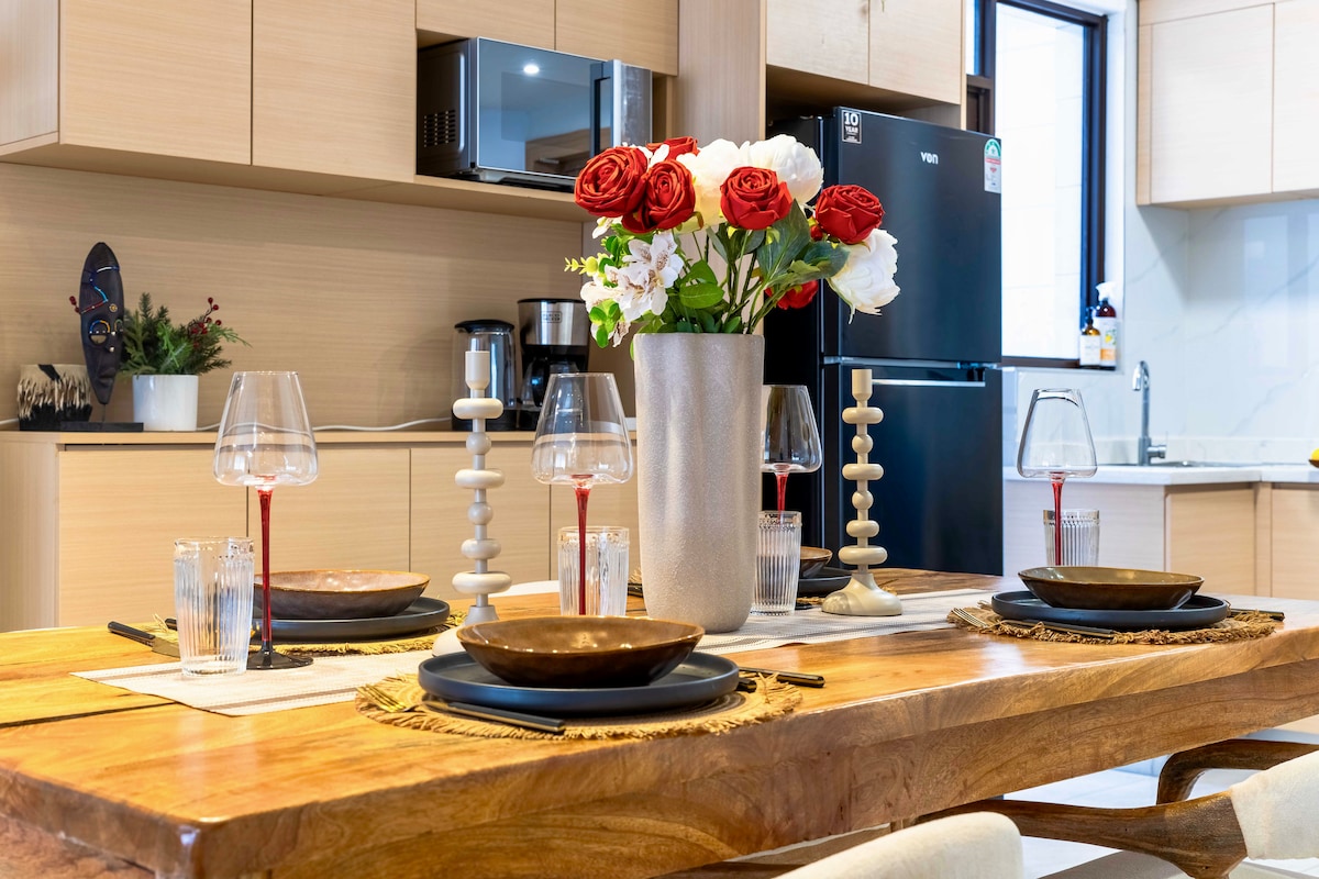 Enjoy a stylish experience at this centrally-located place. PREMIUM AMENITIES A.C Air Fryer / full kitchen Free clothes washing onsite Screens on door/window Premium Fast internet (60mbps) Netflix Lift Top coffee table/desk (work on couch) Water purifier for clean water BUILDING AMENITIES Central location Dedicated parking Gym, Sauna and steam room Game room w/ squash, snooker Infinity swimming pool Restaurant in building Grocery store in building Great water pressure