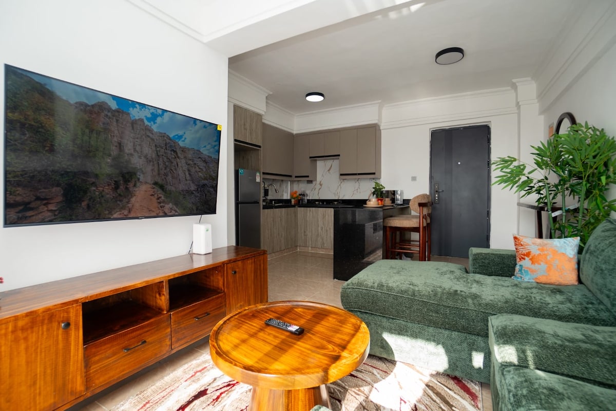 Discover your perfect city sanctuary in our 10th-floor studio, ideally located in the quiet and safe Lavington neighborhood. Here, you can indulge in stunning, unobstructed sunset views Despite this tranquility, you're just an 8-minute walk from the vibrant Junction Mall, placing the best shopping and dining at your fingertips. Ideal for couples and solo adventurers, our sanctuary offers a powerful 24,000 BTU air conditioning system to ensure your absolute comfort.