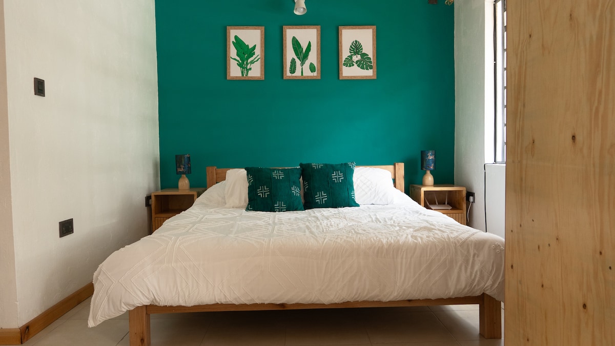 A comfortable and stylish one bedroomed cottage with contemporary accessories. The kitchen is stocked with all the essentials. The bedroom features a king size Zanzibari bed with a framed and spacious mosquito net and firm mattress. A modern bathroom with solar heated water and always lovely bath products and fresh towels. Fast internet and TV with Netflix. A private verandah with a secluded secret garden under the statuesque Bombax trees. Plenty of privacy.