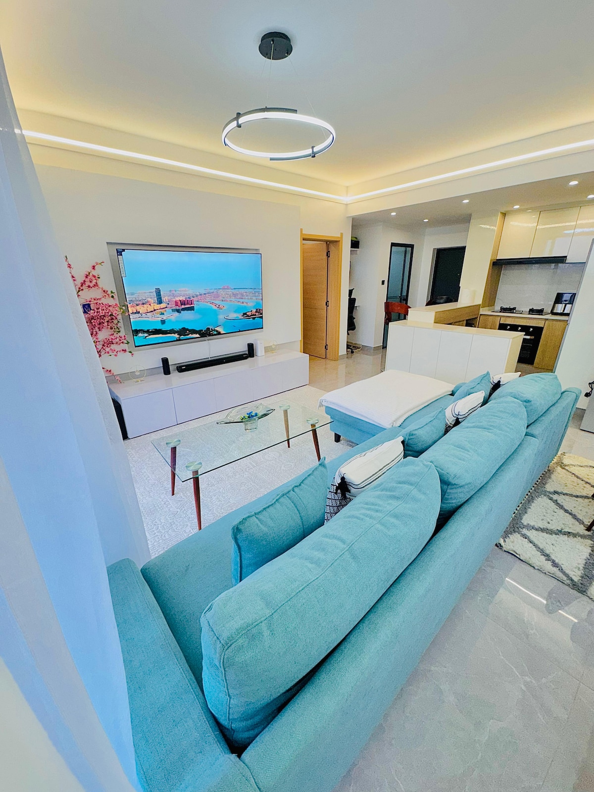 Relax at this unique and peaceful 1 bed retreat . It is a brand new 1 bed apartment ;clean with a queen bed. Its equipped with excellent hot showers, comfortable modern couches and high speed internet. You will find a well equipped kitchen, minimalistic concept and awesome city views. It has Has a full backup generator, a heated pool, state of the art gym and children play area. The location is also excellent with hustle free transportation.