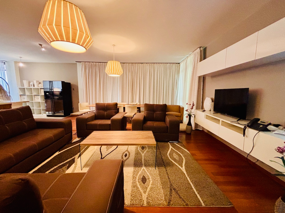 This stylish place to stay is a perfect home away from home Its Beautiful,Spacious, fully equipped with new appliances and everything you need to feel relaxed, cosy and comfortable You Have the appartment to yourself which is 30minutes drive to & from the airport, 10 minutes away from shopping malls, and very close to most scenic restaurants and entertainment spots