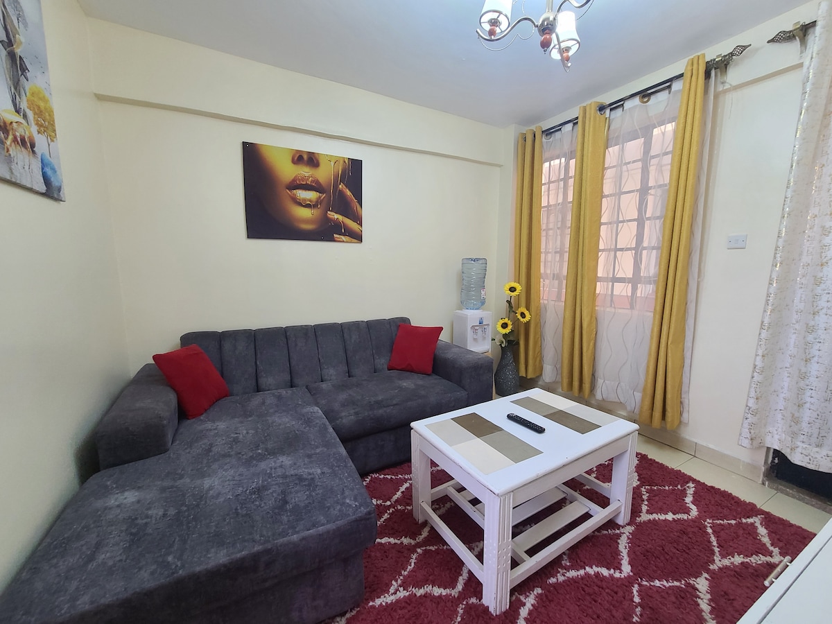 Kb ventures Home is a serene modern well furnished one bedroom which offers a homely feeling away from home. It has a fully equipped kitchen,Fresh water is available. Self check in. It’s situated about 20 minutes from the airport(depending on traffic) Nyayo estate is a gated community with 24hrs security. We have secure parking spot on the property. Shopping center is available on site. I welcome you to feel at home and make memories in this amazing apartment.