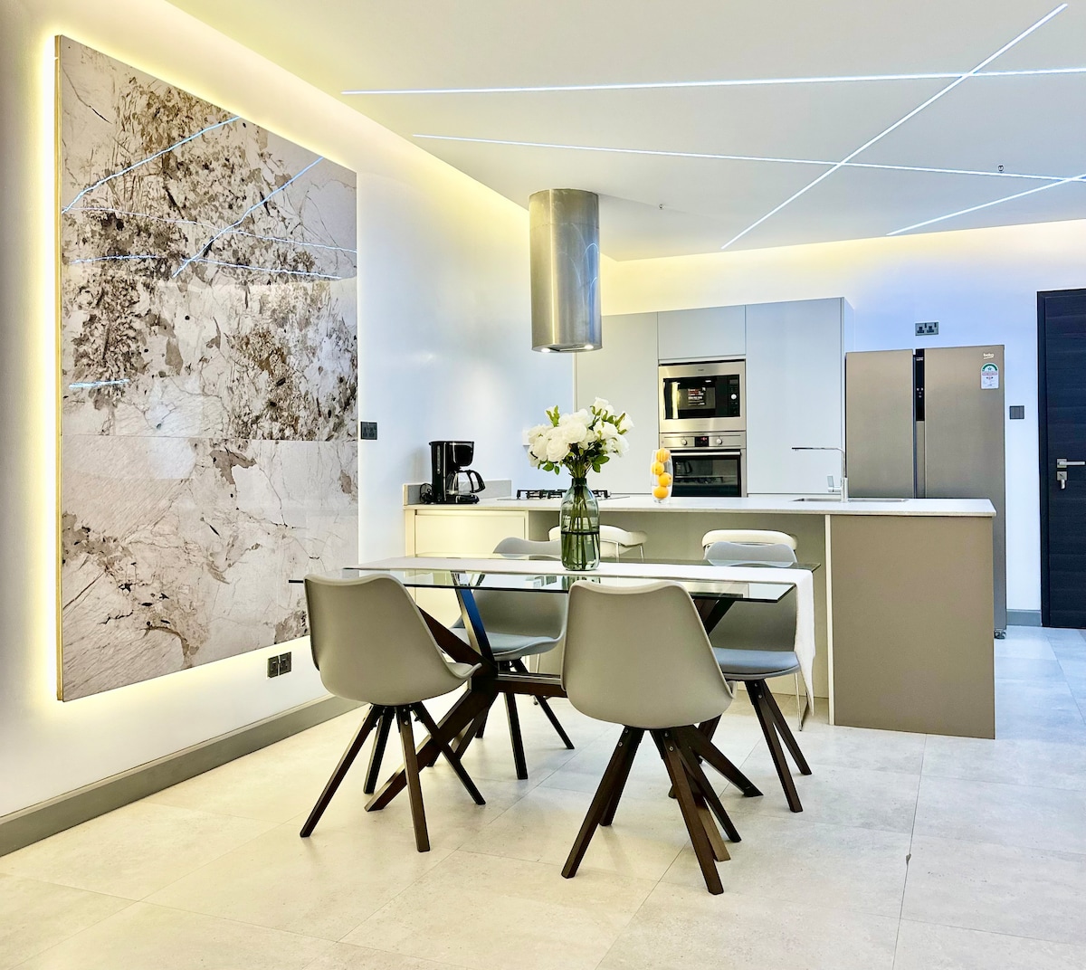 Experience a 12th floor artistic haven, a newly built unique Bohemian Home in the center of Kilimani. You’ll be just a walking distance away from Yaya shopping center, food spots & many other places worth checking out. You will luxuriate in a comfort cozy king bed, with intentionally curated furnishings surrounded with artworks,Art books and natural plants. You will also enjoy your private balcony access, fast wifi, work space, fully equipped kitchen, free Netflix, gym, and more . Book today!