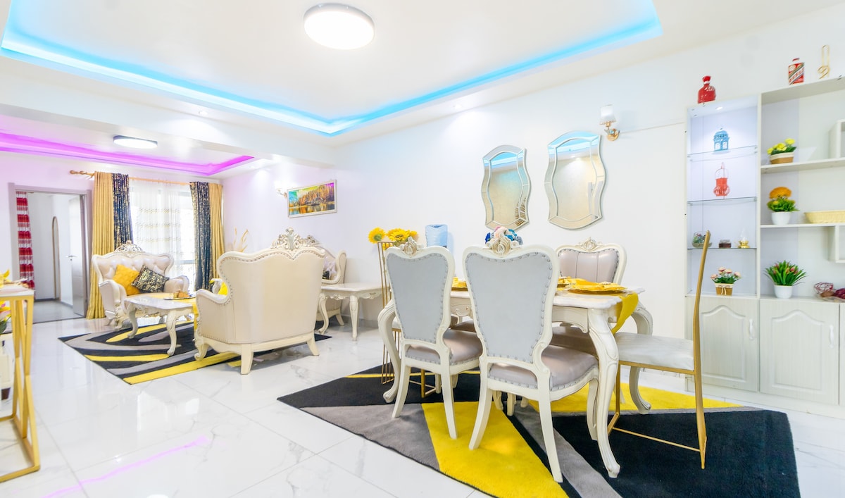 Glamour suites is a 2 bedroom unit with a DSQ, all - ensuite, locate at Kimirembe Place, at the junction of Kindaruma Road and Ring Road Kilimani. It is adjacent to Eastlands Hotel and 850m from Yaya Centre. It has a private basement parking, lift access, borehole water, external CCTV surveillance, Solar Water heating, Netflix enabled smart TV, high quality furniture & equipment, spacious fully fitted kitchen, comfy beddings, stylish deco, classy utensils among other modern items.