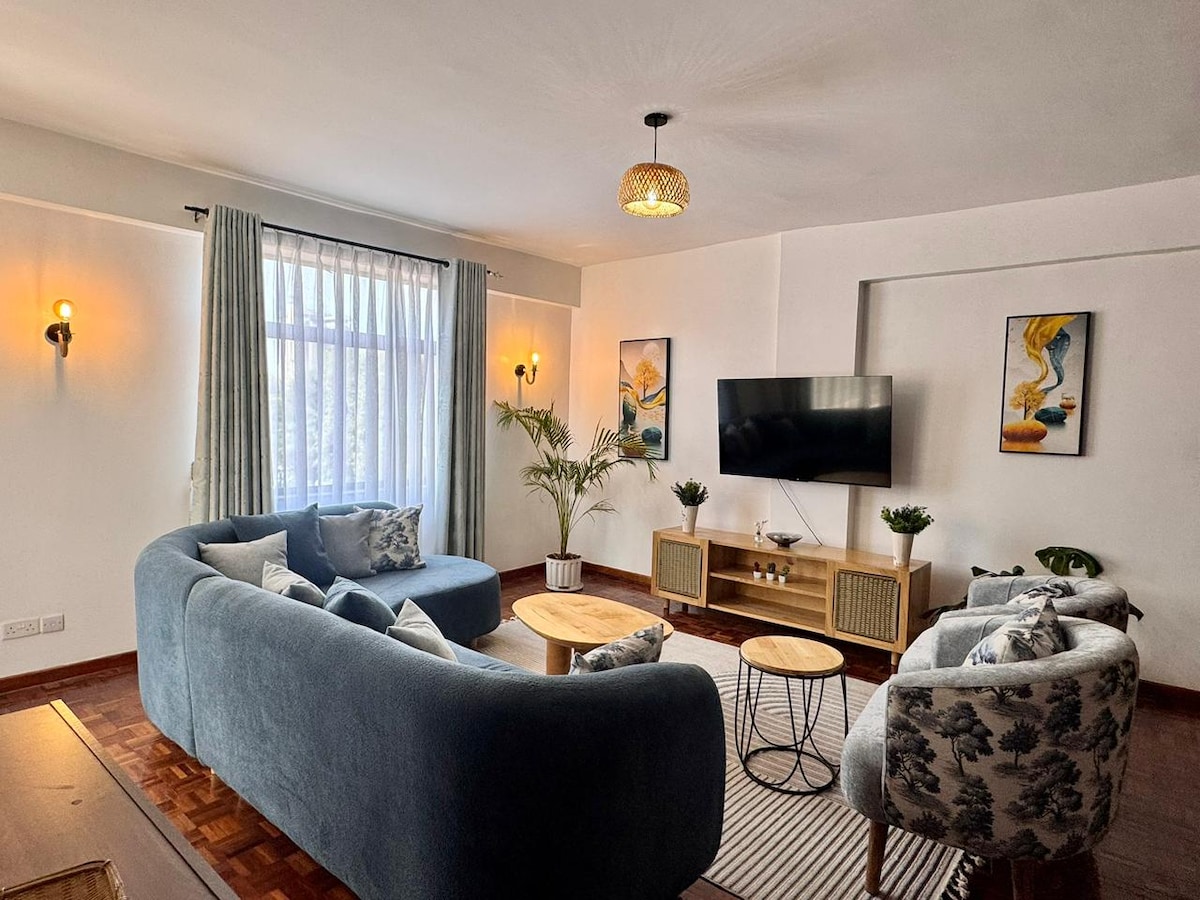 Book your stay at our amazing 2-bed 2-bath apartment. Located in a modern building with with 3 high speed elevators, rooftop pool and gym. Come experience a stunning sunsets from the balcony or just chill indoors as you escape the hustle and bustle of the city. Ideal for both short and long stays with 24/7 security and reception are for a comfortable, stress-free stay. In a central location just 5 mins to the CBD, 20 mins to JKIA, 10 mins to the National Park, and 5 mins Wilson Airport.