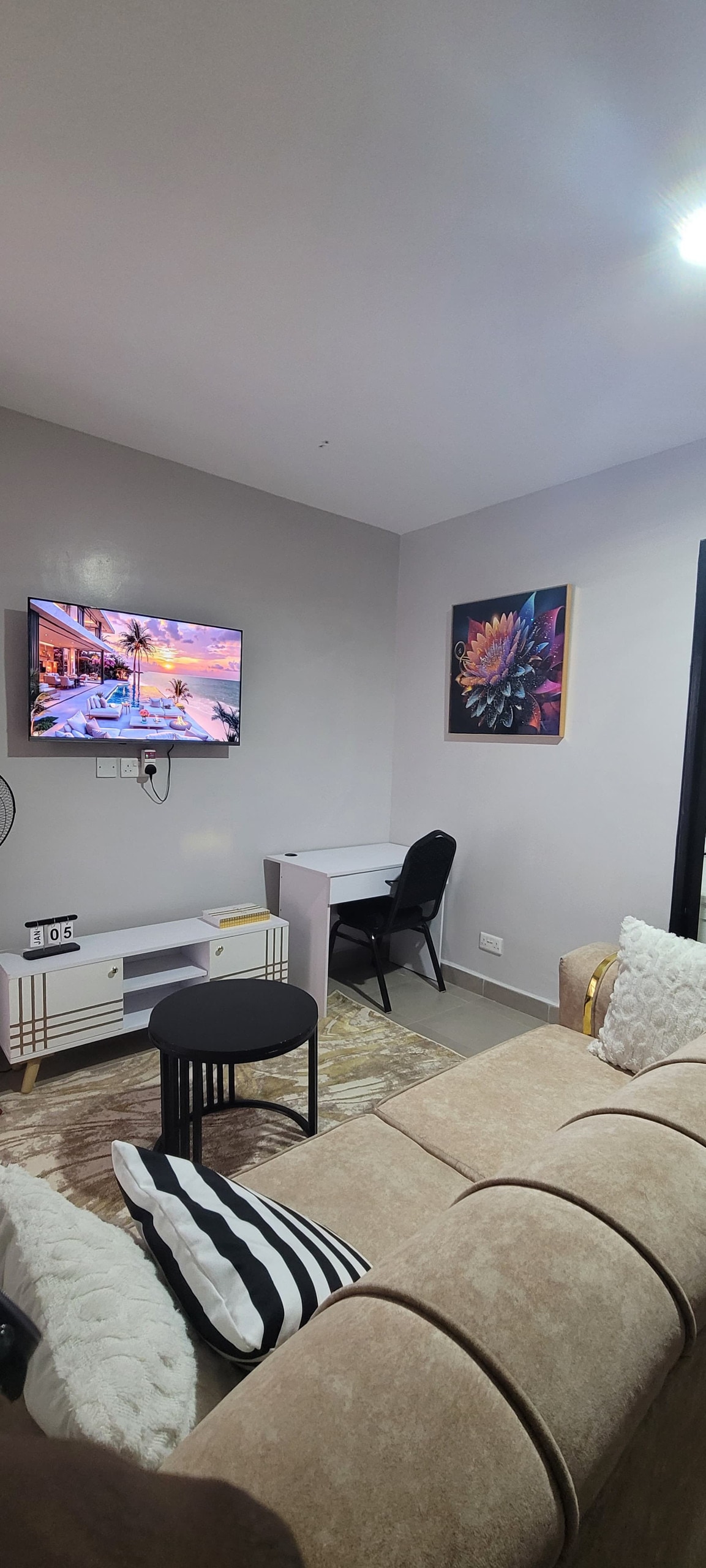Modern 1-Bedroom Apartment with Stunning City Views in Kilimani Welcome to your stylish home away from home on the 16th floor! This newly built, beautifully furnished one-bedroom apartment offers a cozy, homely vibe with breathtaking city views. Enjoy a restful night on a comfortable mattress with clean white linen, and unwind with a 55” Smart TV for your favourite shows and movies. Start your day with complimentary coffee, tea, and sugar, and refresh with