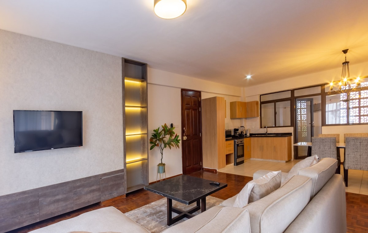 Book your stay at our amazing 2-bed 2-bath apartment. Located in a modern building with with 3 high speed elevators, rooftop pool and gym. Come experience a stunning sunsets from the balcony or just chill indoors as you escape the hustle and bustle of the city. Ideal for both short and long stays with 24/7 security and reception are for a comfortable, stress-free stay. In a central location just 5 mins to the CBD, 20 mins to JKIA, 10 mins to the National Park, and 5 mins Wilson Airport.