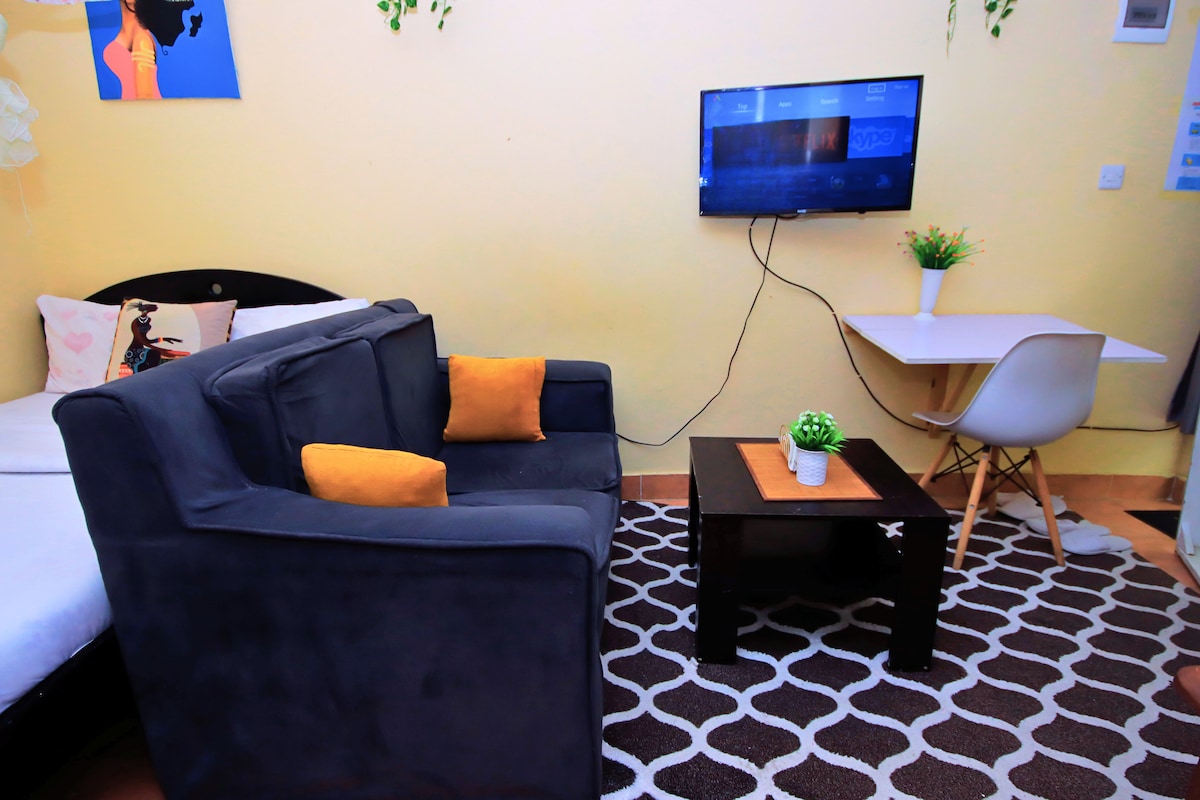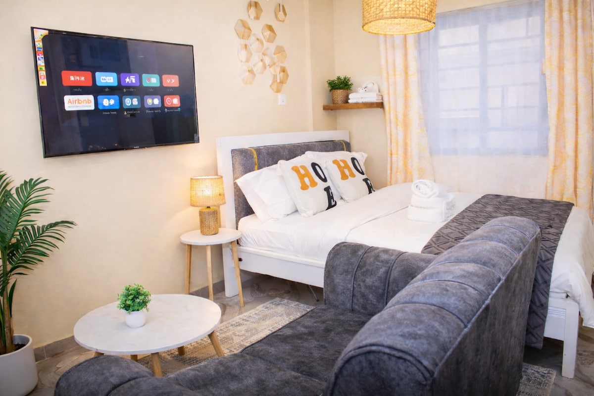 Perfect for Couples or Solo Travelers! Unwind in this stylish and cozy studio retreat just minutes from Buffalo Mall Naivasha. Ideal for business or leisure, the space comfortably hosts 2 guests, offering a peaceful escape with a warm, contemporary touch. Whether you’re attending a conference, enjoying a romantic getaway, or simply passing through town, you’ll love the easy access to shops, restaurants, and Naivasha’s scenic gems all while relaxing in comfort and privacy.