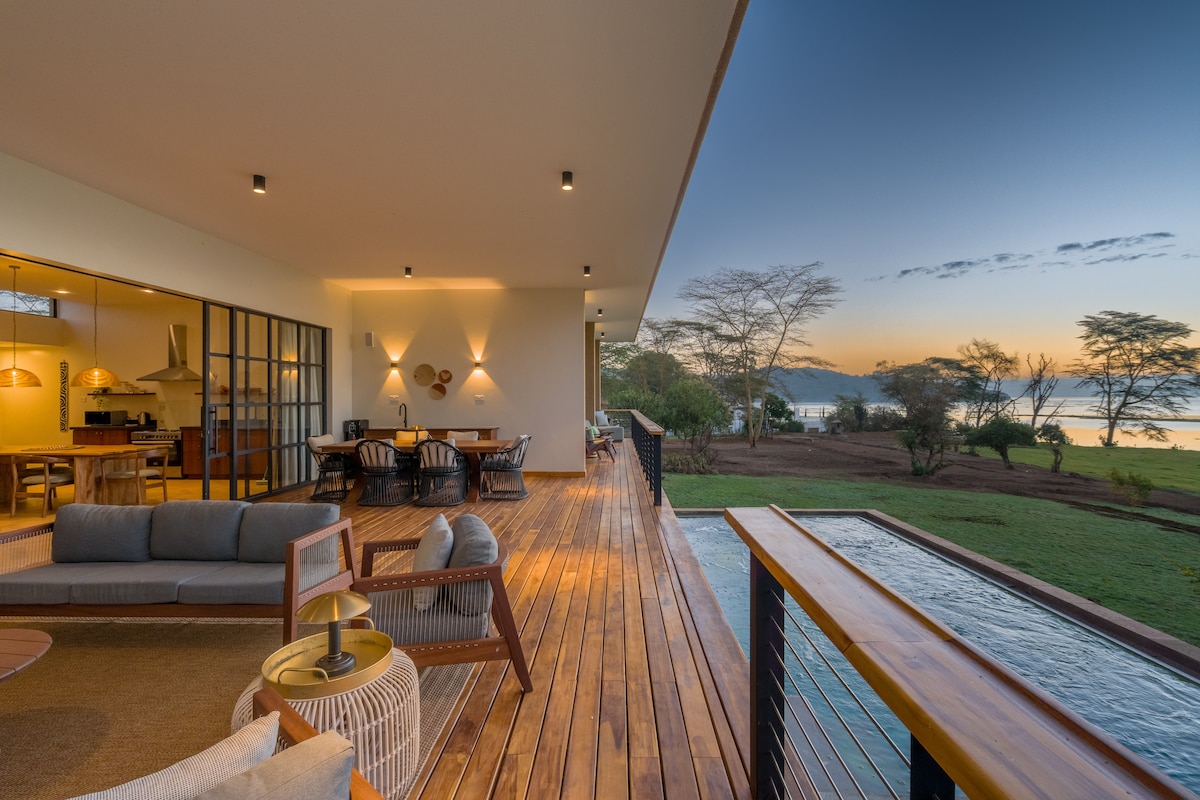Set in the pristine grasslands of Kedong only 2.5 Km off Moi South lake road, This is the ideal vacation rental for a family or group seeking to enjoy tranquility, the spectacular views of Lake Naivasha, Mt. Longonot and the breathtaking sunsets while savoring sundowners by the pool The cottage boasts of a full span glass wall overlooking the scenic views of Lake Naivasha