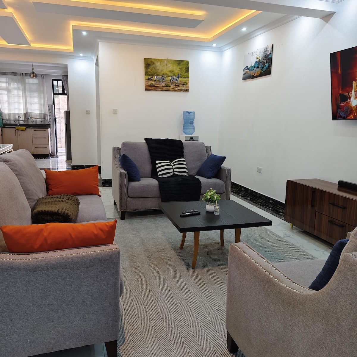 Relax in this stylish and serene apartment, perfect for vacation or work. Conveniently located just minutes from Lake Naivasha, this cozy retreat offers the ideal blend of comfort and convenience. Enjoy amenities like a fully equipped kitchen, high-speed Wi-Fi, Smart TV with streaming services, a hot shower, free secure parking, and 24/7 security. Whether you're exploring the area's attractions or unwinding after a busy day, you'll feel right at home. Book your stay today!