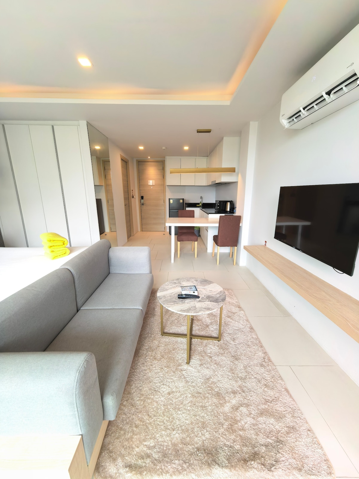Cozy beachfront condo with full kitchen and washing machine. The price is included electricity and water expense and cleanining and linen change once a week during your stay. (if short stay feel free to negotiate for cleaning fee) We provide the best local brand amenities, towels, drinking water and conceirge service to make sure your stay comfortable like home. The location is quite place for relax and it might far from other busy area.