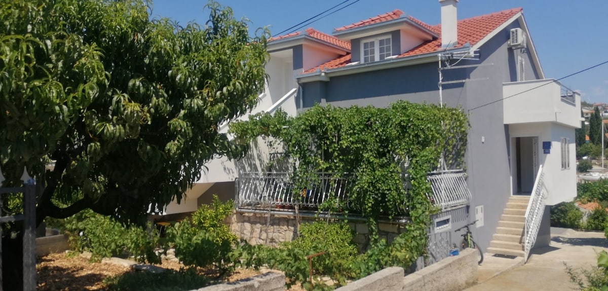 Completely renovated 3-bedroom apartment, magnificient sea views from every corner of the villa, full of sunlight, peaceful, modern, yet with a charm of rustic Mediterranean villas, very spacious, sorrounded by a big garden with pine trees, figs, rosemary…. An ideal starting point to explore the nearby cities of Trogir (6 km), Split (35 km). The property is completely gated, two free parking spaces. Everyone is welcome!