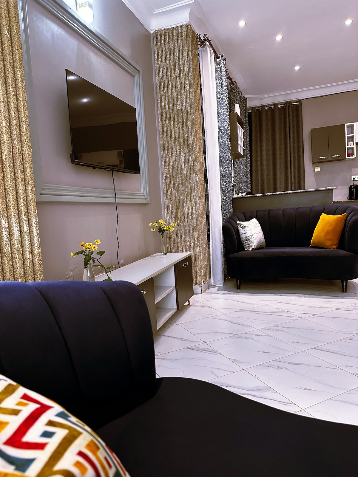 Sleek 1 Bedroom Apartment with beautiful sunset views overlooking a residential hill in Kulambiro.