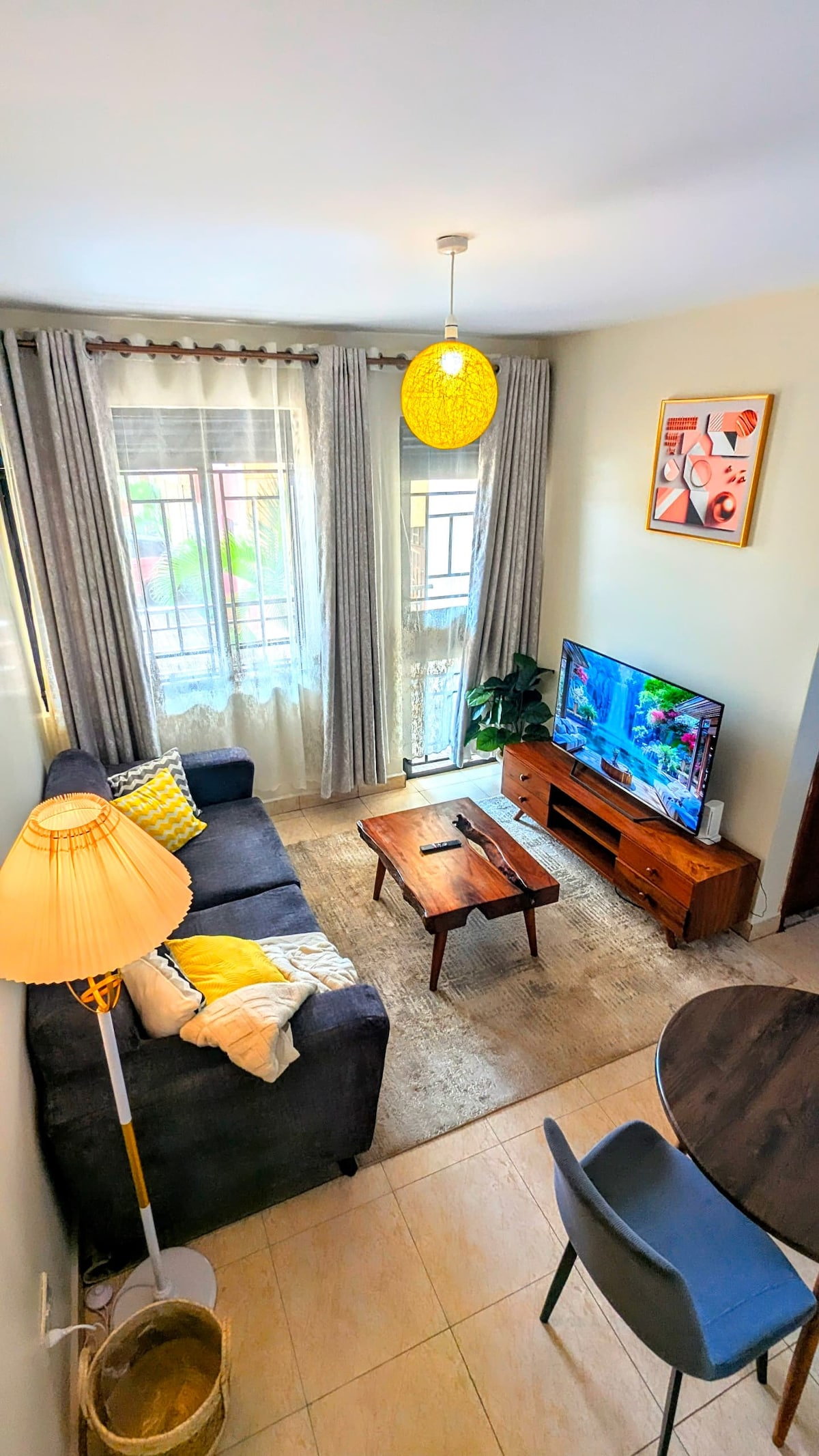 This Aesthetic One Bedroom Apartment is located in Naalya Estate near Quality Supermarket. It’s a few minutes drive to the northern bypass connection leading you to the Airport via Express Highway and close to Acacia Mall, nice restaurants and bars nearby. There are also a number of alternative routes to the city center. The amenities are; - All kitchen appliances eg. Rice cooker, Coffee machine, Blender - Fast Speed WI-FI - 55inch Samsung smart tv - Samsung sound bar - Washing Machine
