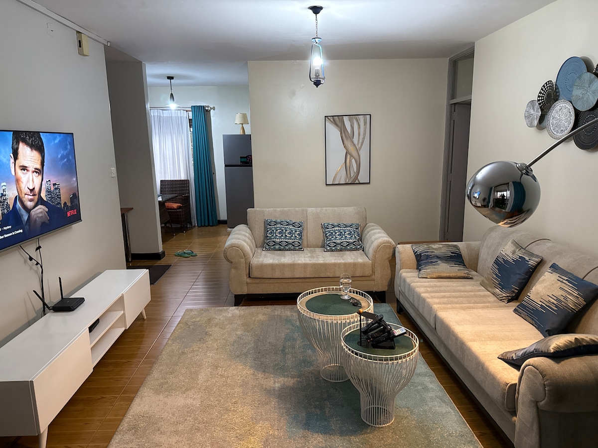 This Aesthetic One Bedroom Apartment is located in Naalya Estate near Quality Supermarket. It’s a few minutes drive to the northern bypass connection leading you to the Airport via Express Highway and close to Acacia Mall, nice restaurants and bars nearby. There are also a number of alternative routes to the city center. The amenities are; - All kitchen appliances eg. Rice cooker, Coffee machine, Blender - Fast Speed WI-FI - 55inch Samsung smart tv - Samsung sound bar - Washing Machine