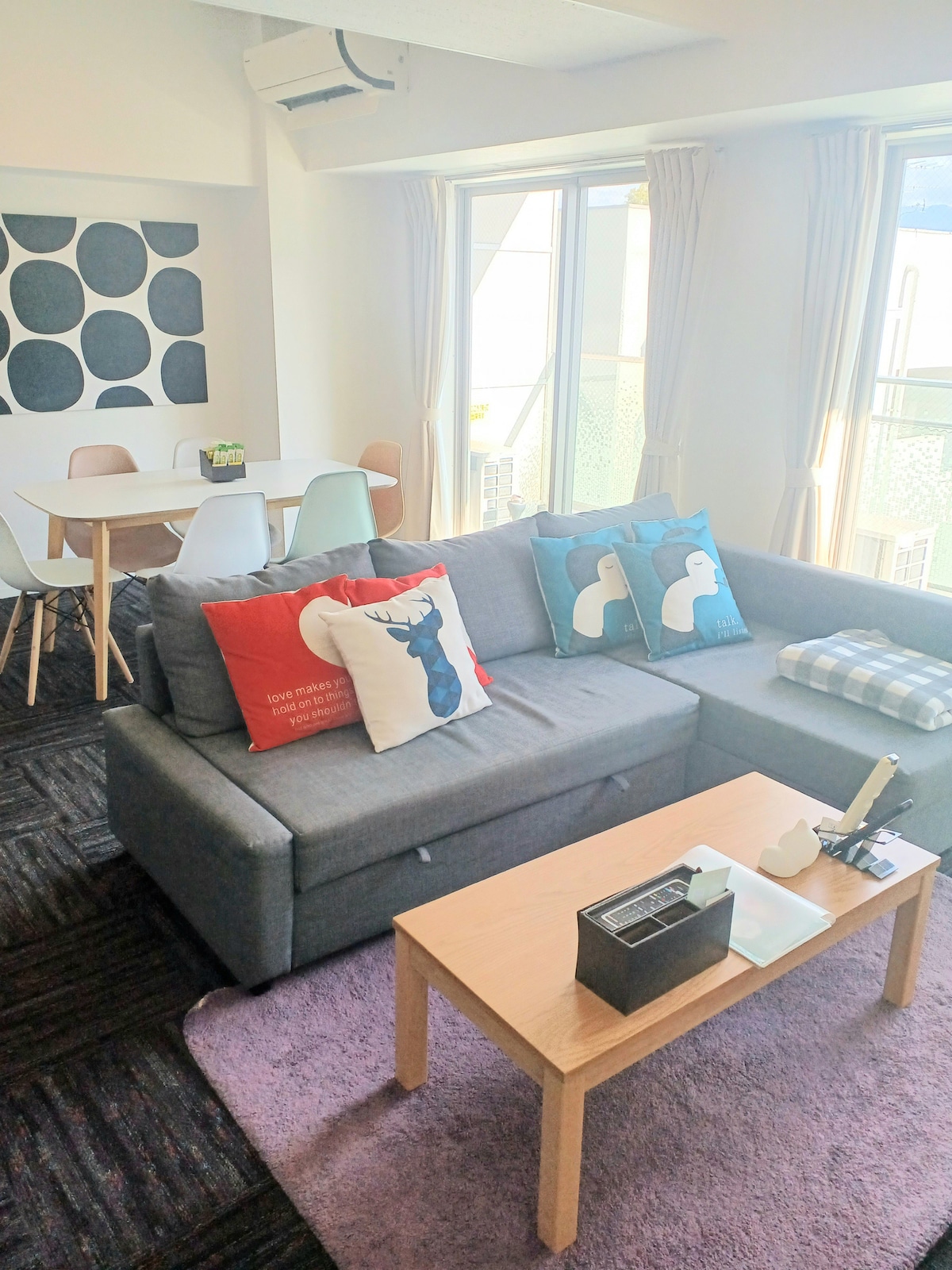 This modern apartment features an open, spacious layout ideal for up to 4 guests. Located in the heart of Hiroshima, it's the perfect base for exploring the city's rich history and vibrant attractions. Whether you're visiting with family or friends, the apartment offers a blend of comfort and convenience with its prime location, contemporary amenities, and plenty of space for a relaxing stay in this historic city.