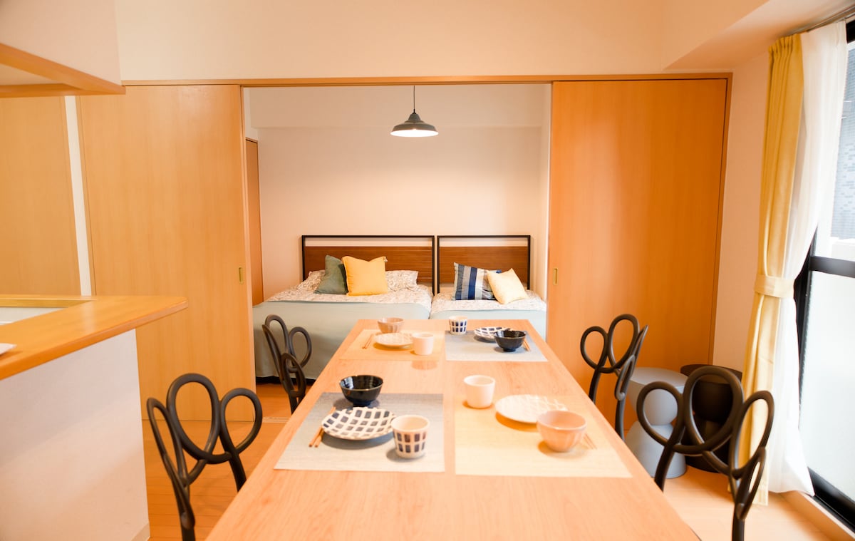 【名古屋駅徒歩圏内】3LDK/高級8ベッド・浴室トイレ2個ずつ完備/家族・友達同士歓迎(最大9名)