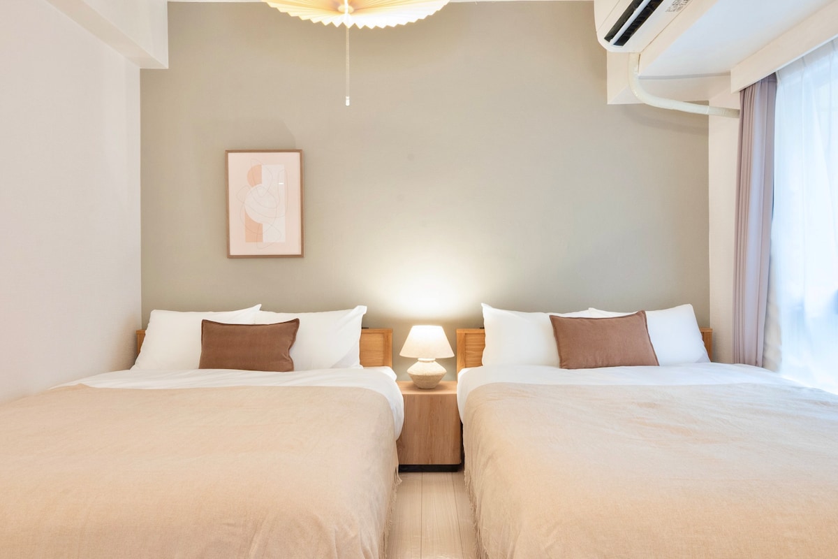 Welcome to our home! 心地よい時間と素敵な旅になりますように。 シンプルで洗練されたお部屋をご用意しました。広々としたベッドでゆったりくつろげる、落ち着いた空間です。駅からすぐの好立地と充実した設備で、短期滞在にも長期滞在にも快適にお過ごしいただけます。便利な都市ステイを楽しみながら、思い出に残る時間をお過ごしください。 2026年2月オープンの名古屋エリアの新しい宿泊施設です。 ご家族やご友人とのグループ旅行にもぴったり。大須観音や名古屋港水族館、犬山城など人気スポットへのアクセスも良好で、観光もショッピングも存分に満喫していただけます。 【アクセス】 地下鉄東山線「新栄駅」より徒歩2分。 名古屋駅や主要観光地への移動もスムーズです。 【お部屋について】 最大5名様までご宿泊可能。 ご家族旅行、友人同士、カップルでのご利用にもおすすめです。 ダブルベッド ×2 シングルベッド ×1 【チェックイン・チェックアウト】 恐れ入りますが、アーリーチェックインおよびレイトチェックアウトは承っておりません。 皆さまのお越しを心よりお待ちしております。