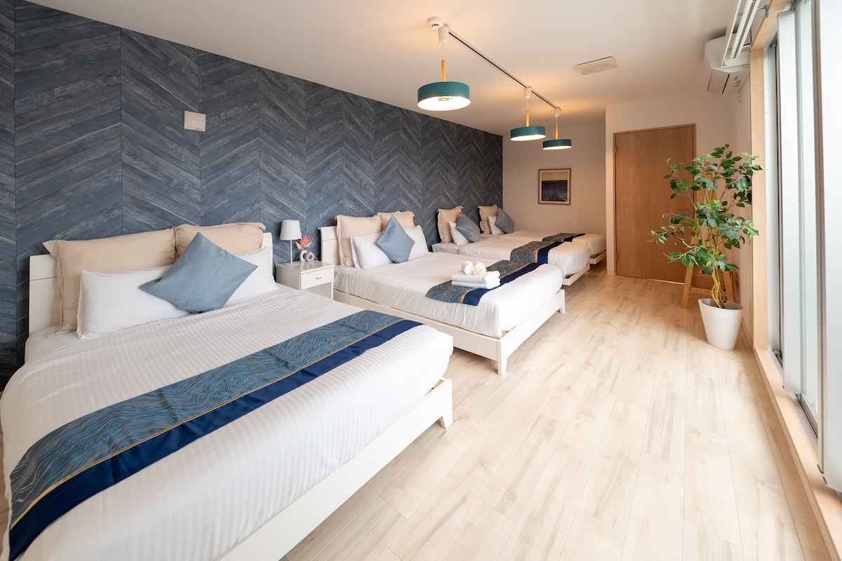 2022年11月竣工,2024年5月开业。位于冲绳西海岸,紧邻国道58号,属于冲绳中部地区,前往南部或北部都很方便,适合长期住宿。 约113平方米的3层整栋建筑,宽敞,舒适,便利。附近有便利店、邮局、大型超市,儿童公园,海滩公园以及知名美味的餐厅。 ✧ 3间卧室,3张双人床,1张单人床,1张单人沙发床。最多可入住8人。非常适合家庭旅行以及朋友们一起出游。 ✧ 带炊具餐具和洗碗机的厨房。餐厅配有幼儿餐椅和餐具。 ✧ 卫生间2间,浴室1间,有洗衣机和烘干机(含洗涤剂,自动投入,免费使用)。 ✧ 3楼有宽敞露台,配有家庭式烧烤炉以及露天桌椅。 ✧ 所有房间均有空调。 ✧ 免费光纤高速无线网络,可免费观看Netflix,YouTube等。 ✧ 房源内2-4台免费停车,步行3分钟可抵达海边,车程3分钟可抵达Araha Beach,距离美国村6分钟车程,距离宜野湾海滨公园6分钟车程。