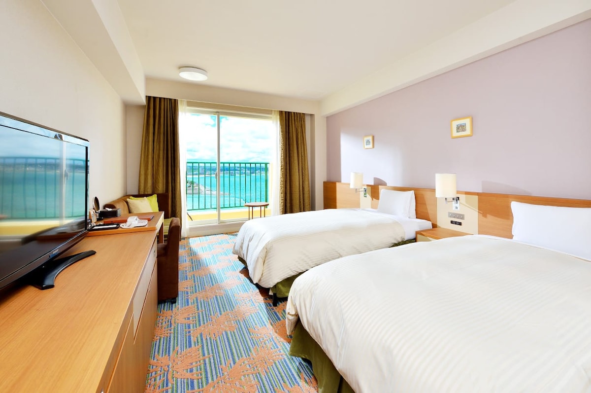Welcome to Lequ Okinawa Chatan Spa & Resort A new resort hotel is born in Chatan. Premier Building newly opened in July! The hotel is equipped with a swimming pool, café & bar, and a natural onsen large public bath with sauna. The hotel is close to many popular tourist spots such as Sunset Beach, Mihama American Village, and Araha Beach, all of which are easily accessible on foot or by car. Please come visit us on your sightseeing or business trip to Okinawa.