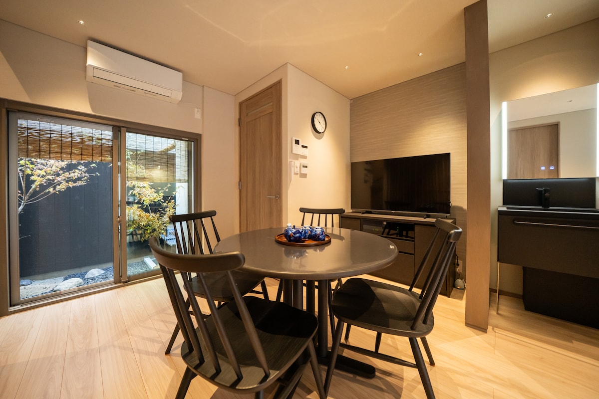 RAKUTOKO ANNEX is a fully renovated Kyoto Machiya, modernized into a hybrid style that blends traditional calm with contemporary comfort. Located on the same quiet alley as our “UME” and “SAKURA” houses, it preserves the charm of a classic Machiya while offering a refined, comfortable stay. Experience Kyoto as if you were living here. Due to a neighborhood agreement, we cannot host children under 12.