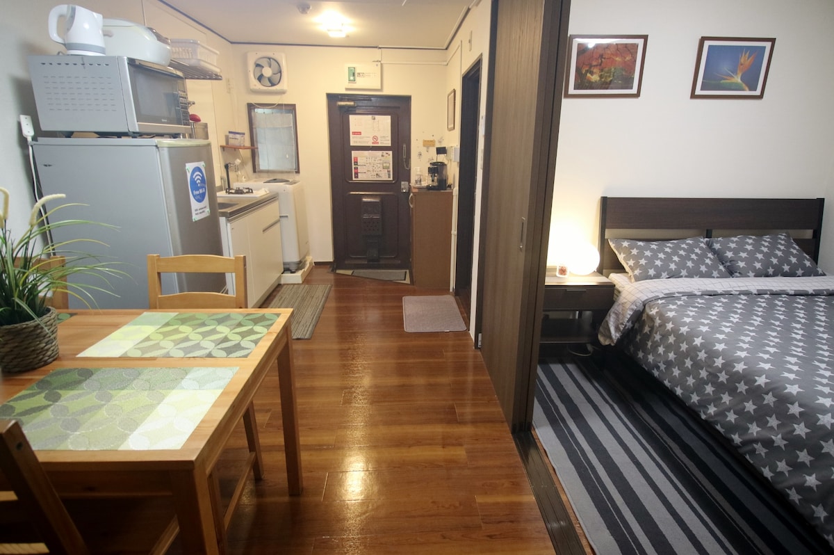 Great access to every area in the hub such as Shinjuku, Shibuya, Harajuku, Ginza, Kichijoji, Ikebukuro. We are located only 4 minute walk from the nearest station. -4min to Shinjuku. -20min to Shibuya -25min to Tokyo station. There are convenience stores and good ramen restaurants around the airbnb. We look forward to your reservation! - max: 4people - Languages: Japanese English Spanish Those who travels to outside Tokyo, we can keep your luggages at our storage before/after your stay.