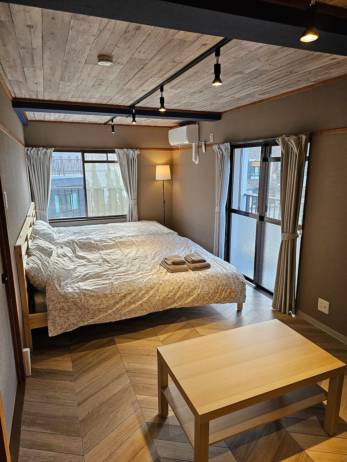 This extra high ceiling 24 sq.m loft apartment is well equipped and designed to make your stay comfortable & homely. Tenjin subway station, Akasaka station, Tenjin bus station, and Nishitetsu Fukuoka station are 10-11 minutes walk away, making this room a perfect base to explore Kyushu. Suitable for families with young & older kids, & groups. Surrounded by local restaurants, cafes, convenient stores, and shops with great access to public transportation. A parking lot is right next