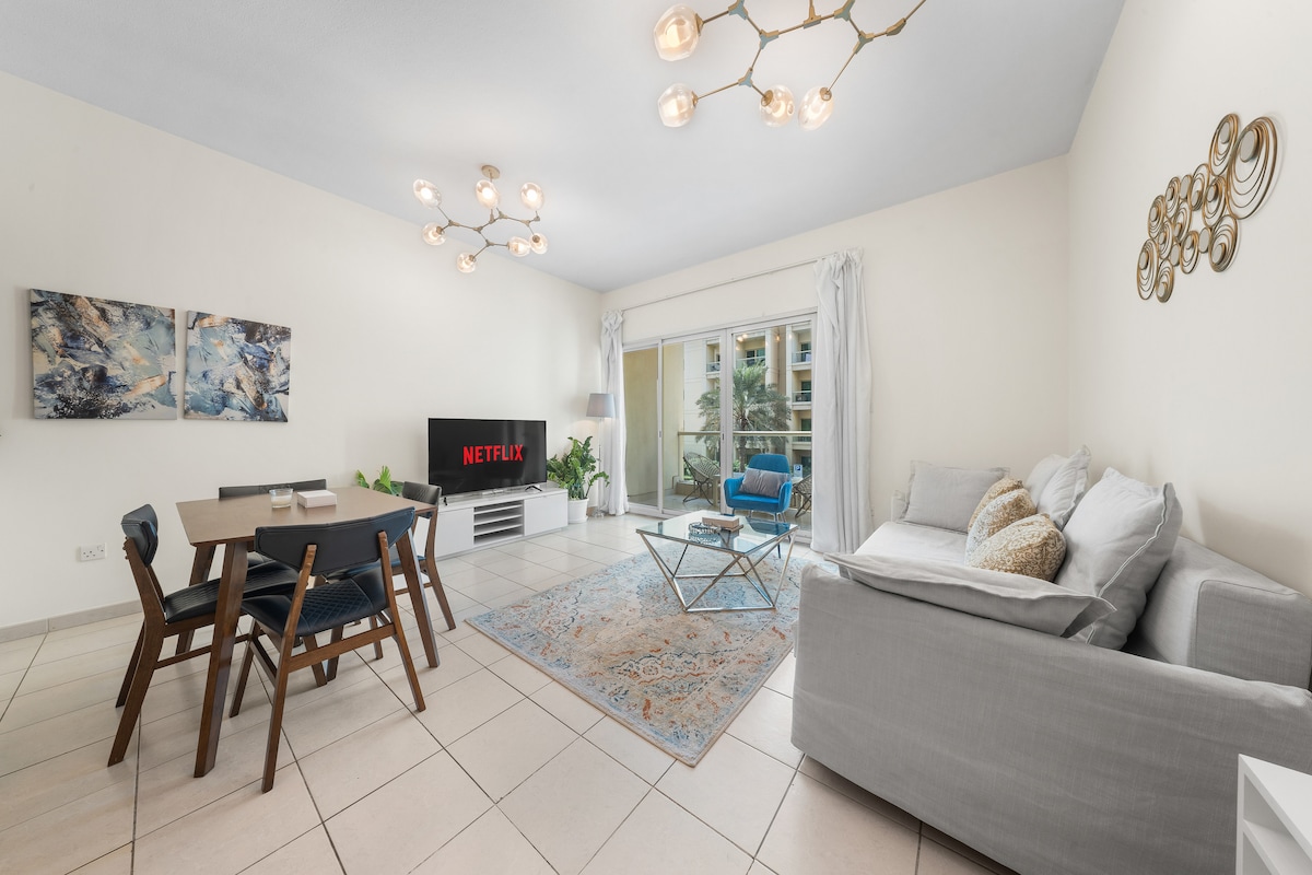 This modern and stylish 1 BDR has amongst the best views of Jumeirah Beach Residences and Dubai Marina. The location is perfect : Dubai Marina is just downstairs and JBR beach is a 10 mins walk. The apartment is newly furnished in a minimalist style, with unique design touches. The apartment is self check-in ready for your convenience.