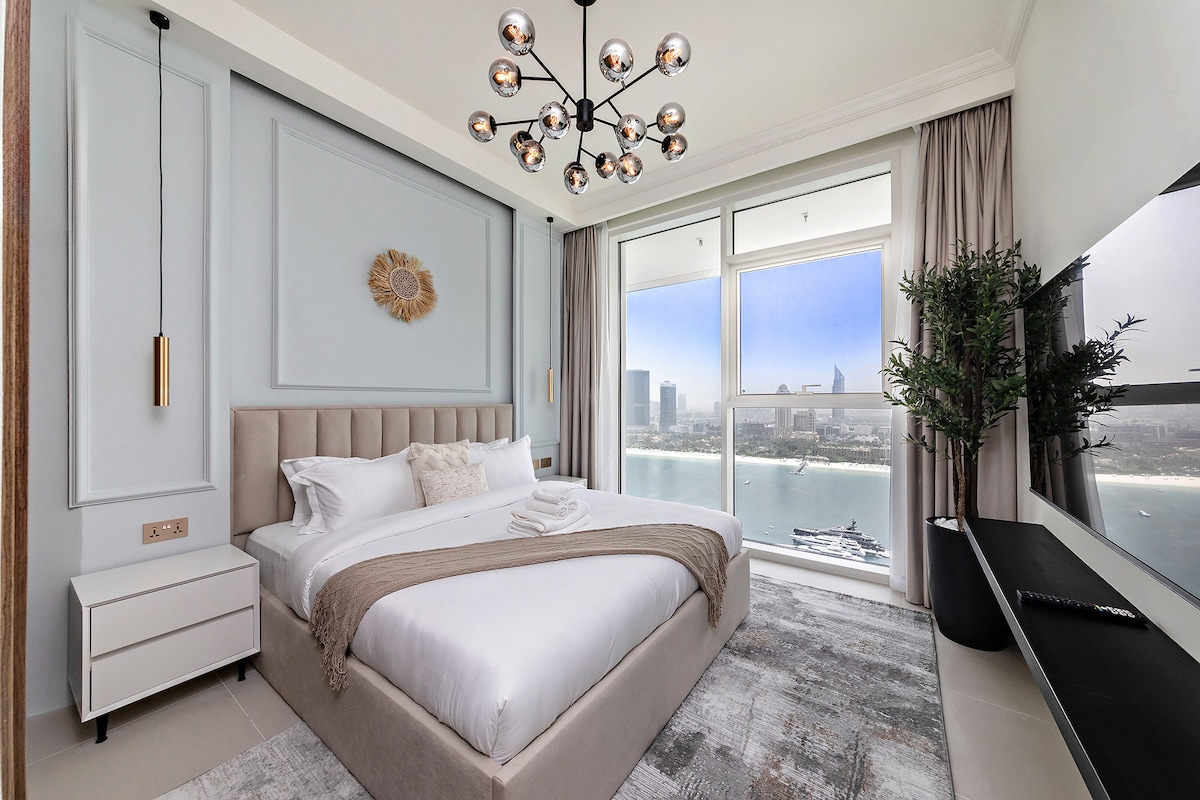 Enjoy modern beachfront living at Palace Beach Residence. This stylish 1-bedroom apartment offers stunning balcony access from both the living area and bedroom, a king-sized bed, and a comfortable sofa bed for extra guests. Perfectly located near Dubai Marina and JBR, you’ll have easy access to beaches, attractions, and dining. Whether for leisure or business, this apartment offers comfort and convenience in a prime Emaar waterfront community.