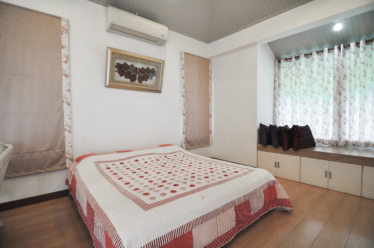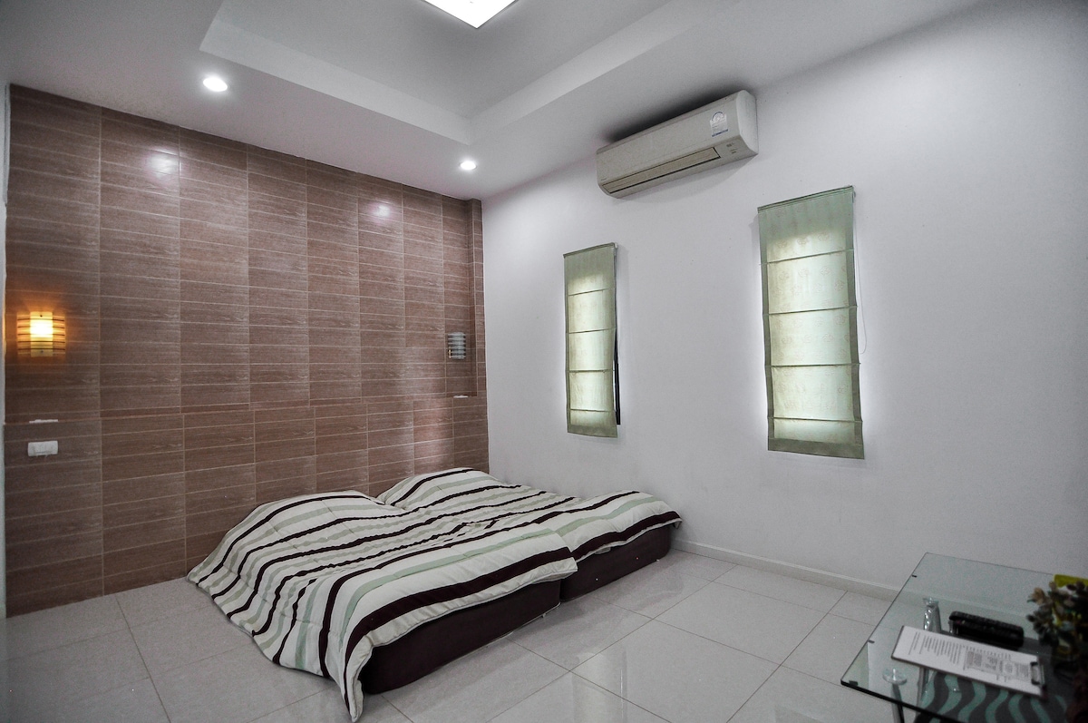 1 Bedrooms 1 bathroom where can access to the swimming pool. The private swimming pool connect with a yard for enjoy nature view for barbucue and party. There are 1 queen size bed, 1 single bed and 1 sofa bed in the room. This villa is in the ground floor decorate in modern graphic. The villa are very quiet area suit for family and friend to chill out in nature