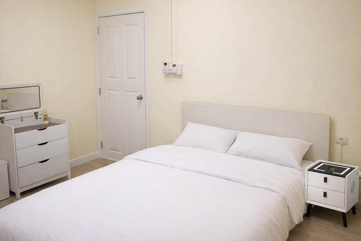 Entire townhome for rent 2 beds 2 bath 2 air conditioner and water heater Have kitchen and laundry big tv with reclining sofa Just carry one bag and move in. located in the heart of the city You can use the salt system swimming pool and fitness for free in front of the village project.(closed every Monday) There is a security guard 24 hours a day.